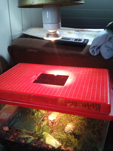 Die Wirkung (tatsächliche Temperatur) sollte vorher genau mittels eines Thermometers getestet werden, sie sollte nicht über 30°C hinausgehen. Dementsprechend die Wahl der Leistung der Heizölampe, habe jetzt 20 W Spotstrahler und diesen auch noch höher gehangen, sonst wird die Schildy gegrillt :-( Heizlampen sowie die Einstreu gibt es im Zoofachgeschäft. Meine Heizlampe wird 11 Uhr ein und 17 Uhr ausgeschaltet. Als Einsteu habe ich folgendes verwendet.