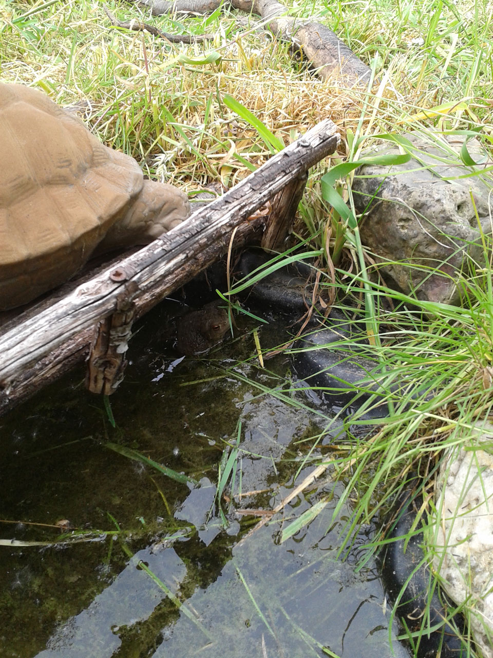 Eine Kröte hat einen Platz im Teich der Schildy gefunden.