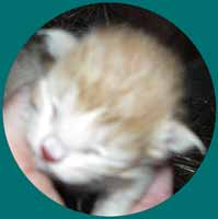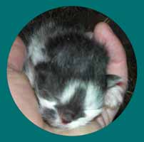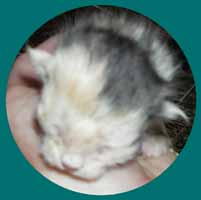 Am 30.6.2010 kam eine ganz überraschende Meldung vom Stiefelchen. Er hatte schon bald nach seinem Umzug einen "Kumpel" bekommen, ganz in weiß, von einem Tierarzt vermittelt. Aber siehe da ... Ende Mai brachte der "Kumpel" 2 süße bunte Babies zur Welt. |